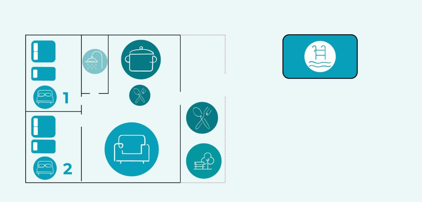 Holiday Home. The private pool and fireplace are the standout features of this holiday home. The air-conditioned holiday home has 2 bedrooms and 1 bathroom with a shower and a hairdryer. Guests will find a stovetop, a refrigerator, a dishwasher and kitchenware in the well-equipped kitchen. The holiday home also includes a barbecue. Boasting a terrace with mountain views, this holiday home also features a washing machine and a TV. The unit has 4 beds.
