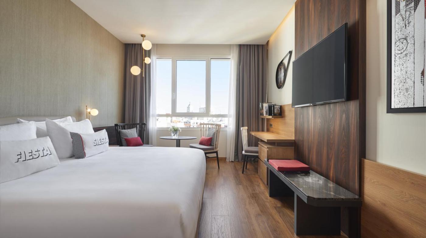 Additional amenities include a 24-hour fitness center, complimentary Wi-Fi throughout the hotel, and round-the-clock room service. Conveniently located just a 45-minute metro ride from Adolfo Suárez Madrid-Barajas Airport, the hotel is steps away from landmarks like Puerta del Sol, Plaza de Callao, El Retiro Park, and the Literary Quarter.