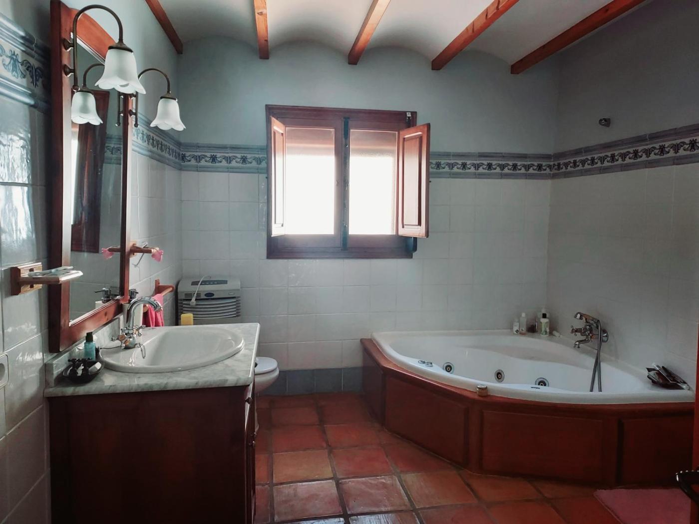 Two-Bedroom House. The hot tub is the standout feature of this holiday home. The holiday homes kitchen is available for cooking and storing food. The spacious holiday home provides air conditioning, a washing machine, heating, as well as a terrace. The unit offers 5 beds.